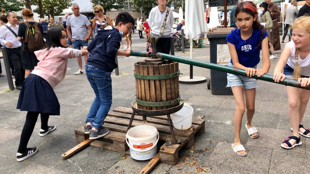 Sau thánh lễ, giúp ép táo làm nước táo cùng mọi người