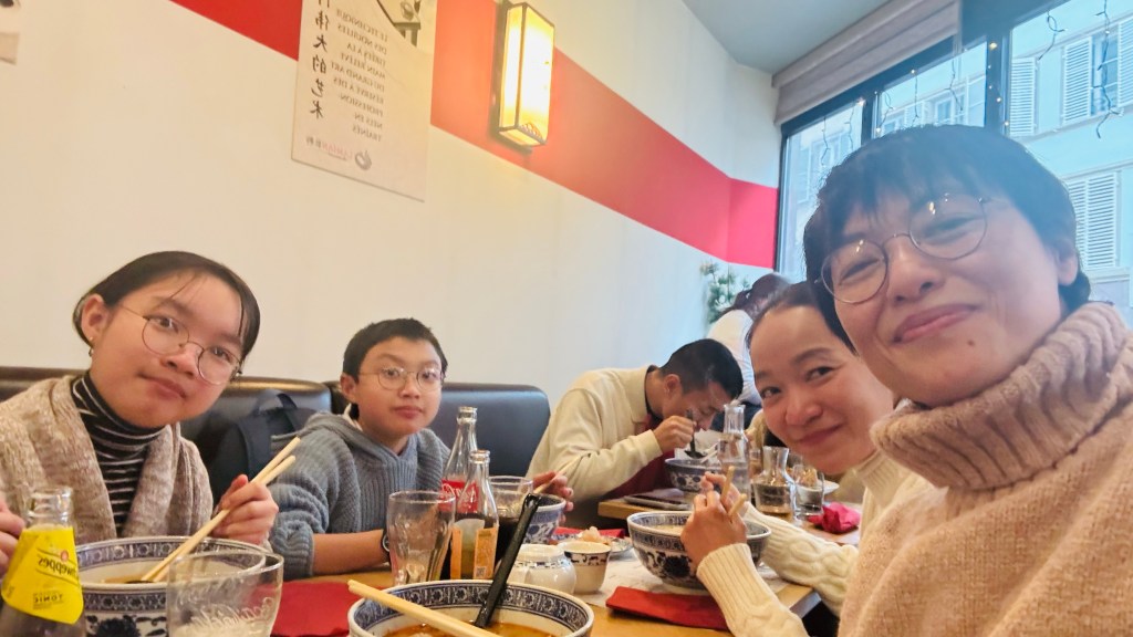 Hai bạn nhỏHai bạn lớnNhà chọn xe Bus của Lufthansa di chuyển đến Ga tàu chính tại Strassburg. Xe chạy êm, dịch vụ thoải mái. Dòng sông này là địa điểm đi dạo rất lý tưởng, trong lành, nhẹ nhàng.Bốn bạn nhà mìnhNhà thờ cổ kính mang nét đặc sắc riêng.Cả nhà cùng ghi điều ước nguyện lưu giữ lạiỞ Strassburg có quán mì Tàu rất ngon, mì và hoành thánh được làm tươi tại chỗ.Một tô to bựKhắp các con phố tràn ngập không khí Noel.Đôi bạn lớn làm chân cây thông ^^