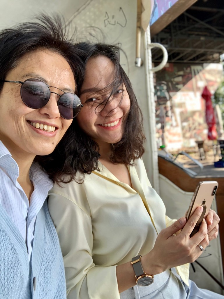 Mở đầu những giờ trốn con là hai gương mặt tươi rói 😉