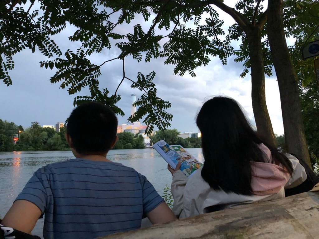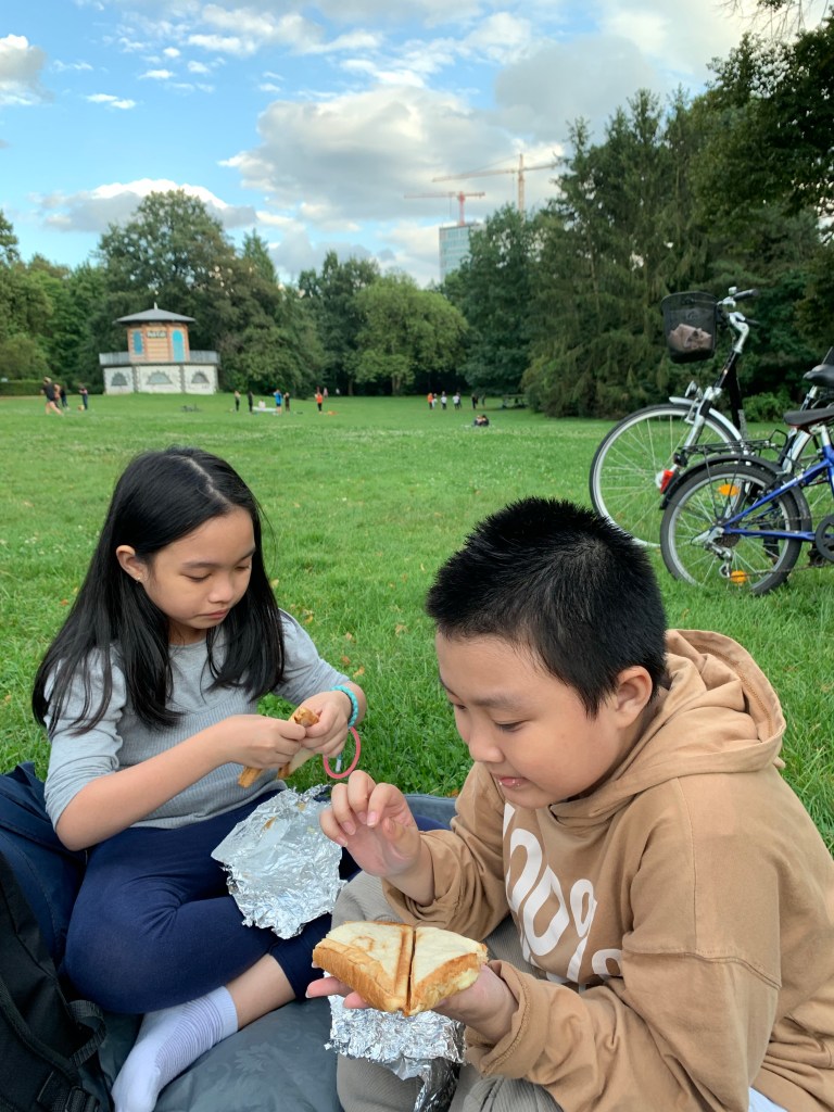 Dẫn đầu đoàn đua là LV 😁Su Bim với trạm tàu điệnNghỉ chân 1 chút tại quãng trường trung tâm, hai đứa rất thích nghịch bong bóng ở đó.Đã đến công viên, ăn chiều bằng toast luôn là lựa chọn nhanh nhất khi dã ngoại.
