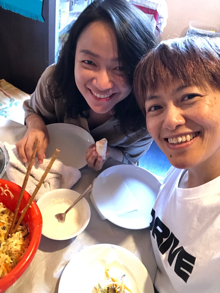 Cùng nhau làm chả giò chay đãi Carla và Hiệp