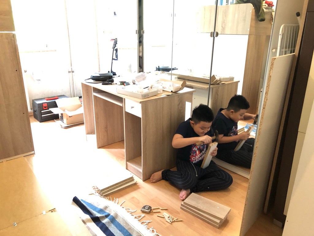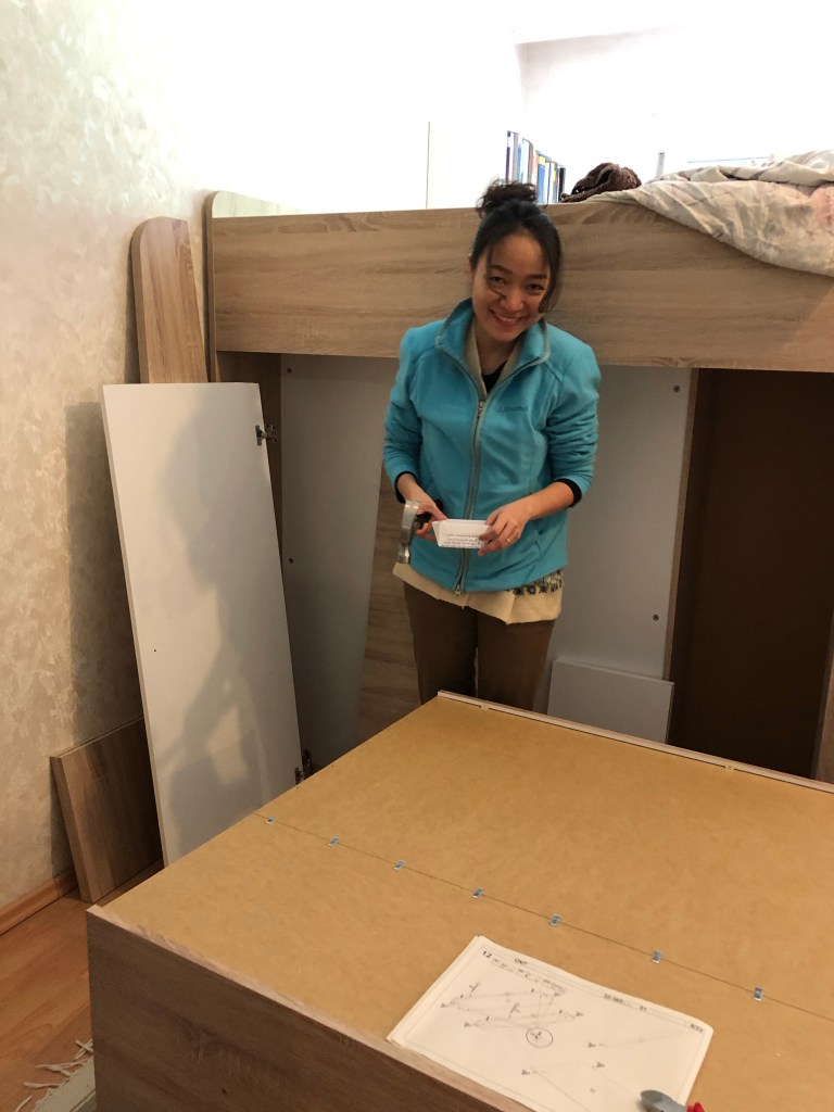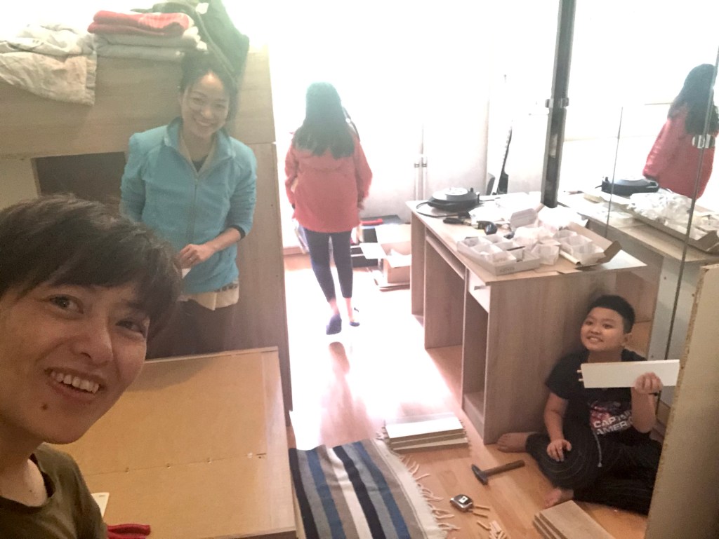 Cả nhà cùng lắp ráp Bim giúp cô lắp ráp giường tủ bàn của mình Mẹ D. cũng rứa Và cô bé hay trốn… Rồi cũng quay lại 👌